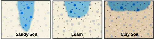 Here’s an illustration of how water moves through sandy, loam, and clay soils.